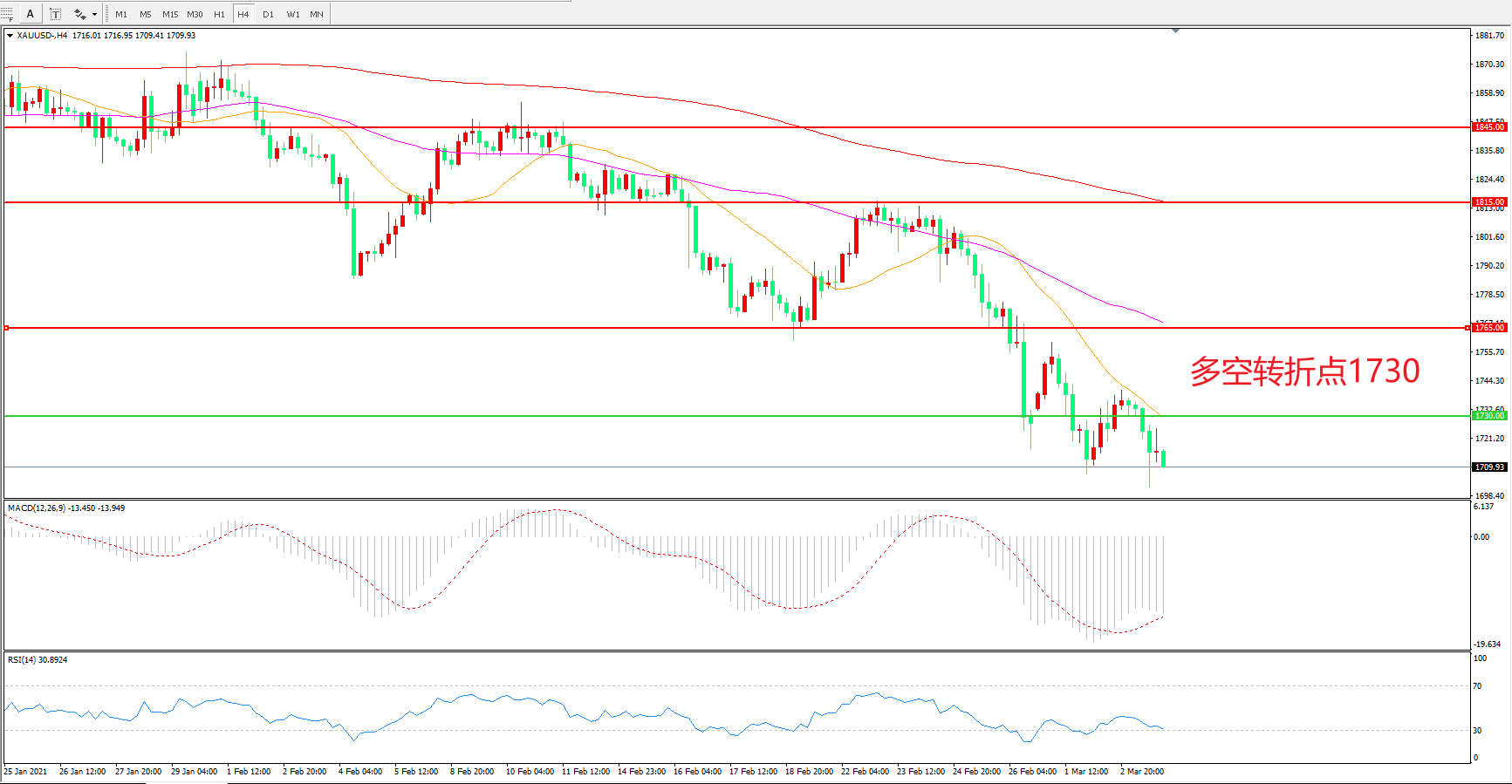交易策略:在1730.00之下看跌,目标1700.00    1660.00