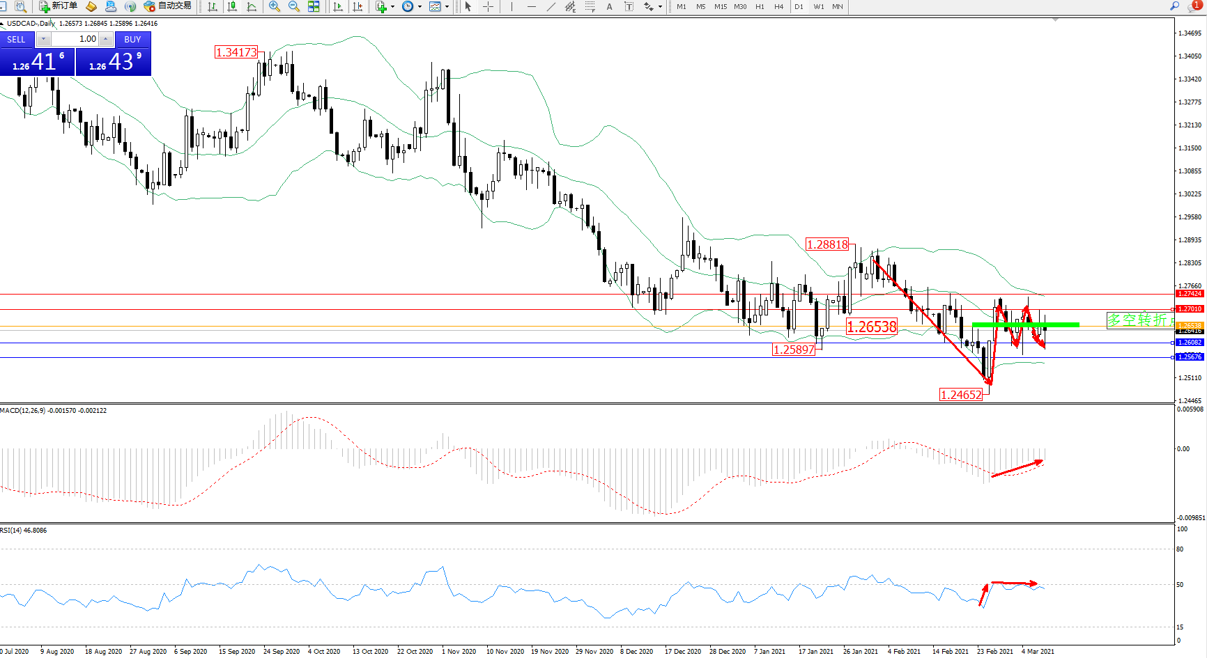 交易策略:1.26538下方看跌,目标1.26082、1.25676