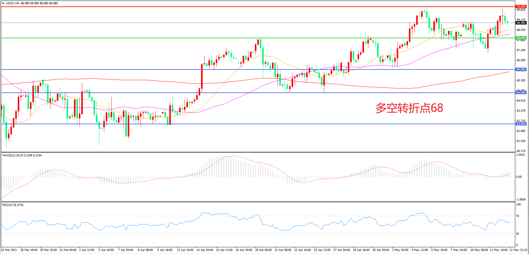 多空转折点:68.00