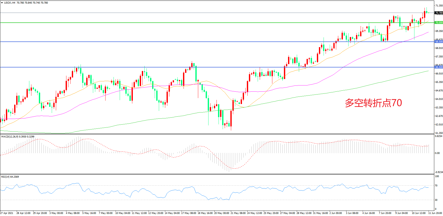 交易策略:在70.00之上看涨,目标72.00 75.00