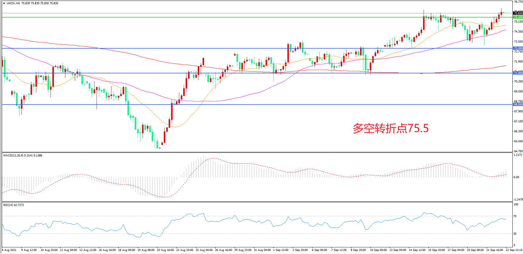 交易策略:在75.50之上看涨,目标78.00               80.00