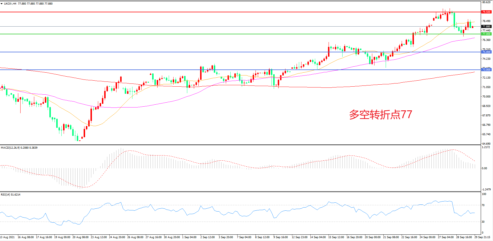 周三(9月29日),根据美国能源信息署数据显示,当周美国EIA原油库存增加457.8万桶,结束此前七周下降态势,多头情绪受到打击,布伦特原油震荡回落,收报77.88美元/桶。在连续上涨冲击前高后,市场资金需要时间来梳理方向,伴随着天然气和煤价格大涨,原油的替代需求边际转强,基本面供应紧张需求向好将推动油价逐渐走强。