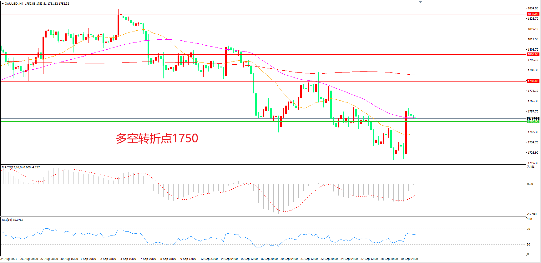 多空转折点:1750.00