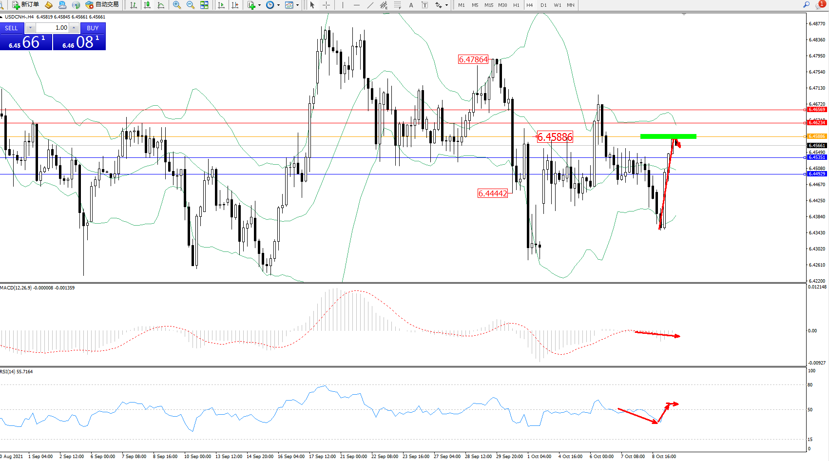 备选策略:6.45886上方看涨,目标6.46234、6.46569