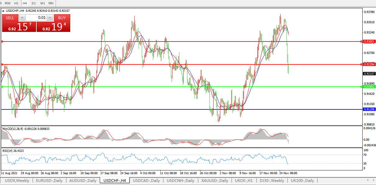 美元兑瑞郎USDCHF    4小时图: