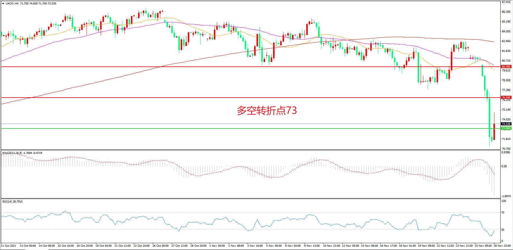 多空转折点:73.00