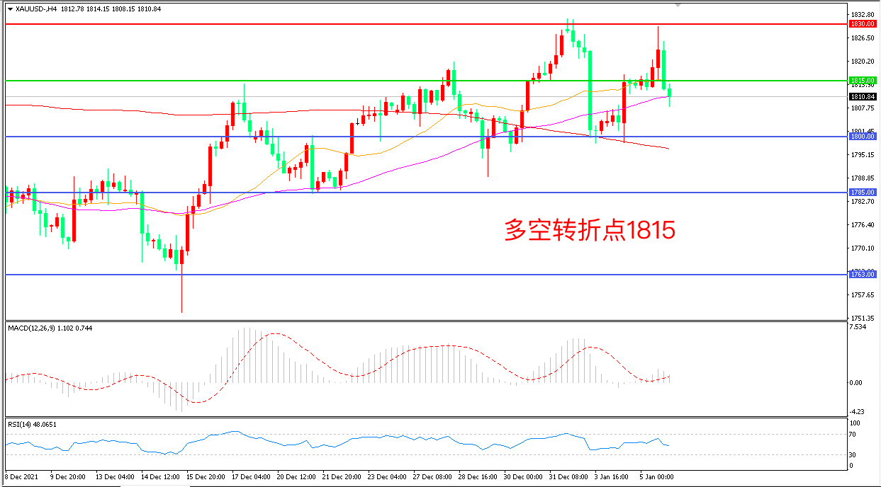 周三(1月5日),美联储会议纪要显示,缩表速度可能超过之前一轮缩表周期,部分美联储官员希望在加息后不久开始缩表,金价先涨后跌,收报1809.93美元/盎司。目前多空双方在重磅数据前的表现都相对谨慎,小非农”ADP的亮眼表现也对市场形成冲击,如果周五的非农数据与此表现一致,金价未来可能再度承压。