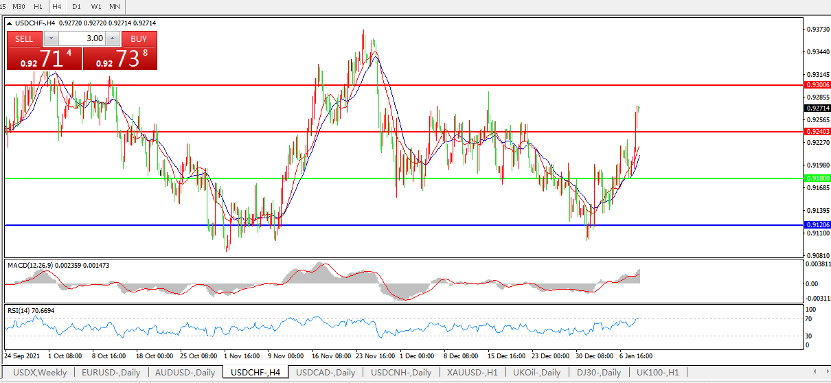 美元兑瑞郎USDCHF    4小时图: