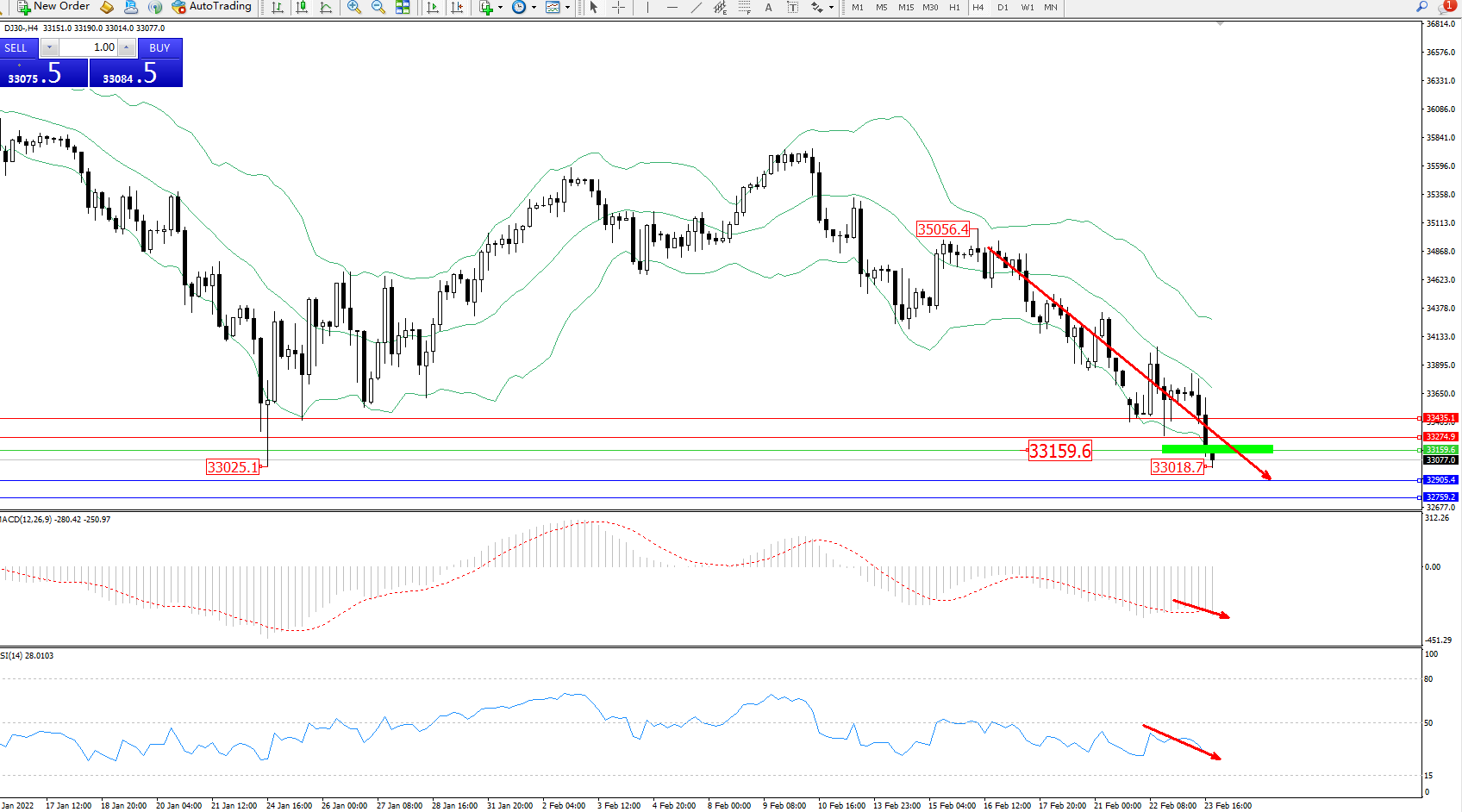 道琼斯指数2月23日(周三)收盘下跌464.36点,跌幅1.38%,报33132.25点,美联储戴利:现在是时候放弃美联储对经济的非常规支持了,加息的时间、幅度和资产负债表调整将取决于经济、数据的变化,如果没有任何显著的负面意外,适宜在3月份开始调整政策,目前还没有任何迹象会打乱3月份的加息计划,地缘政治局势是更大不确定性,需要处理好这件事,但不会破坏加息计划,倾向于至少四次加息。