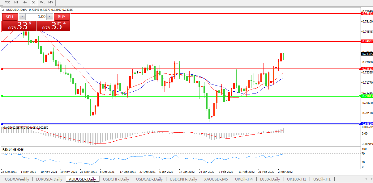交易策略:0.7100上方看涨,目标0.7250、0.7400