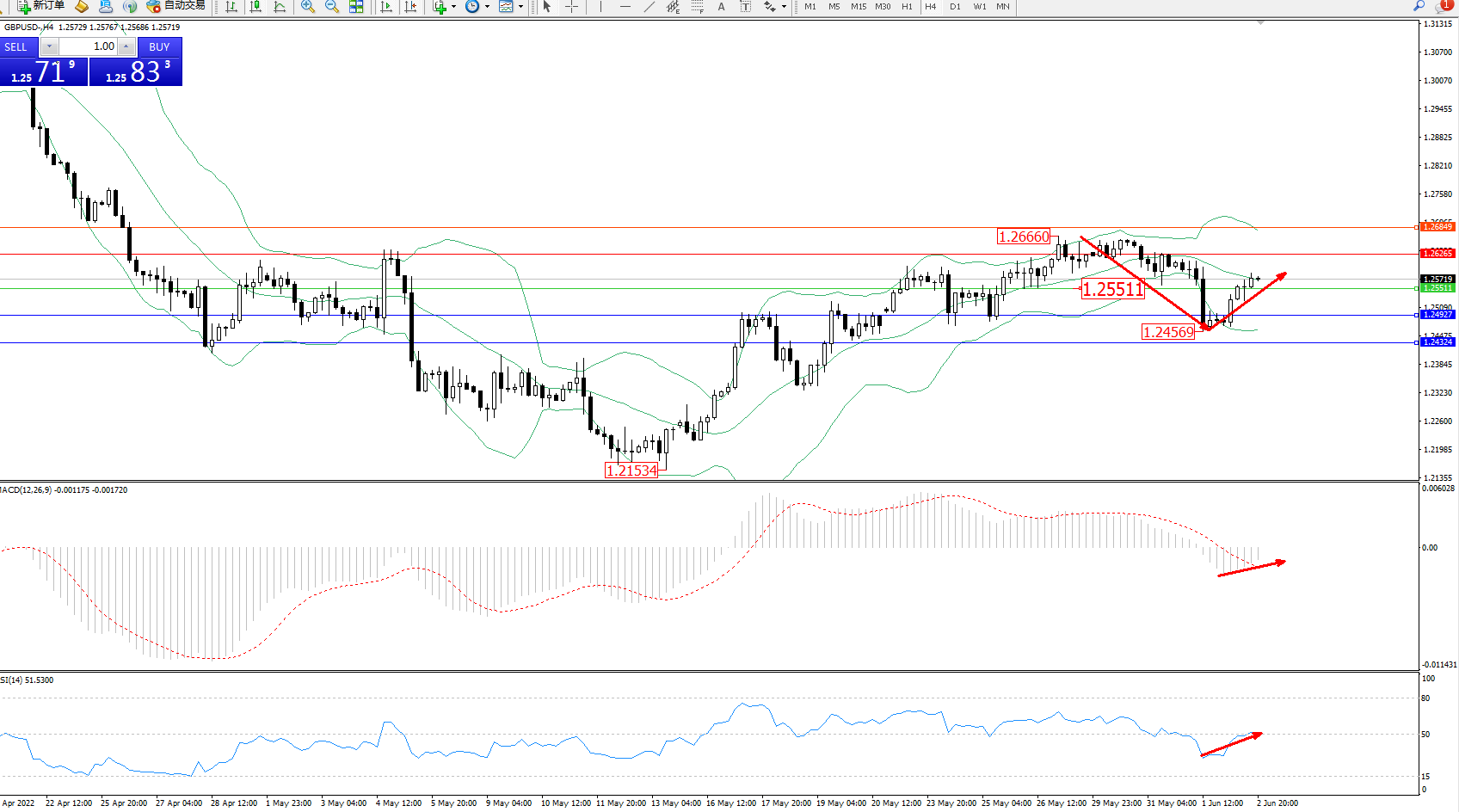 交易策略:1.25511上方看涨,目标1.24927、1.24324