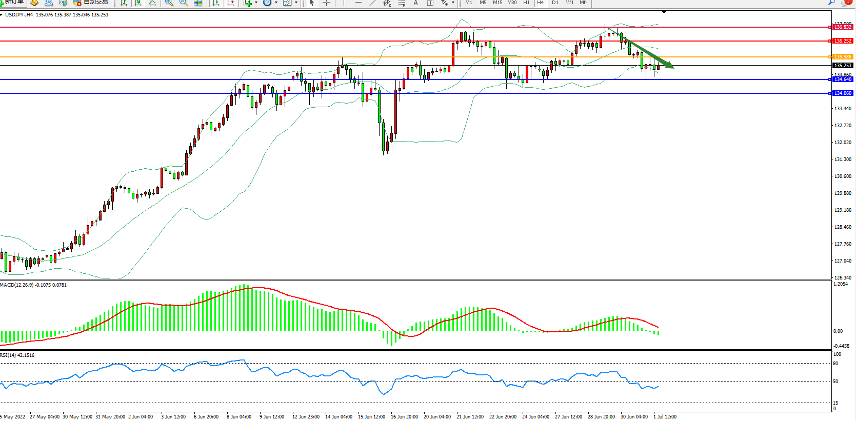 交易策略:135.586下方看跌,目标134.640、134.060