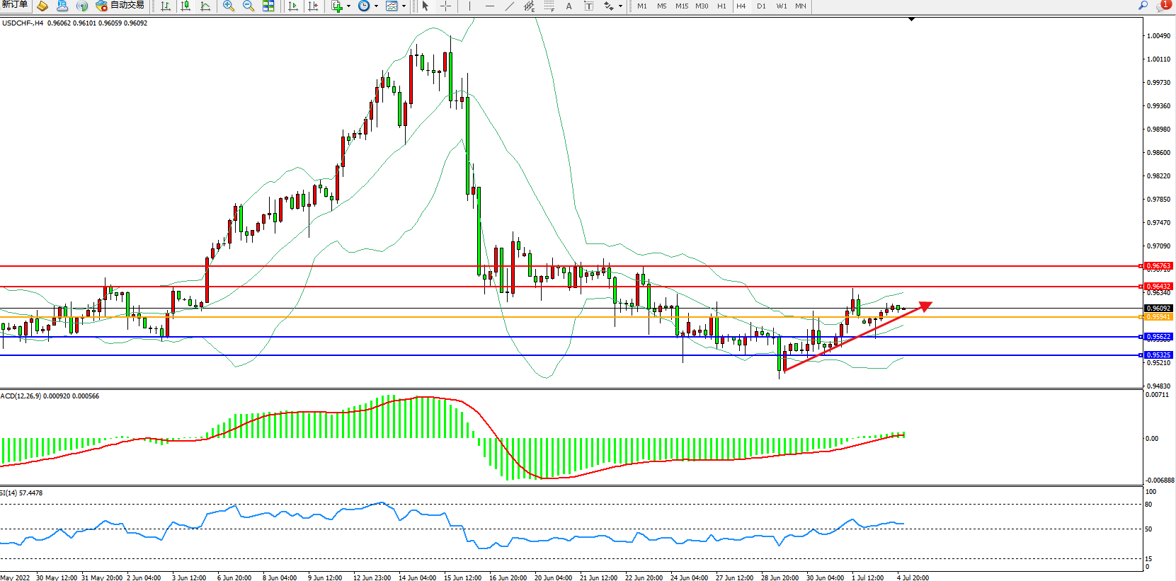 美元瑞郎USDCHF——4小时K线图显示: