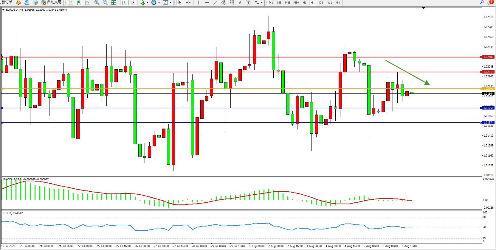 欧元兑美元维持1.01951附近震荡,欧元区经济增长在2022年上半年出人意料地强劲,这一数字为1.2%,比美国经济强2%左右。在第三季度,预计一些南欧国家将受益于旅游业的复苏,但经济增长的整体趋势明显下降。