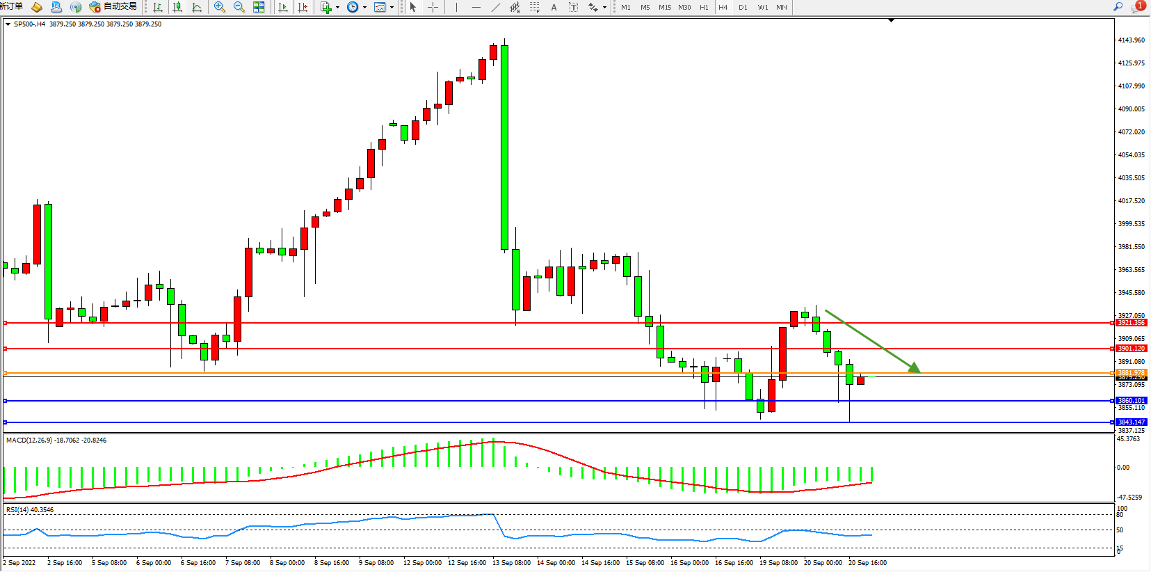 标普SP500——4小时K线图显示: