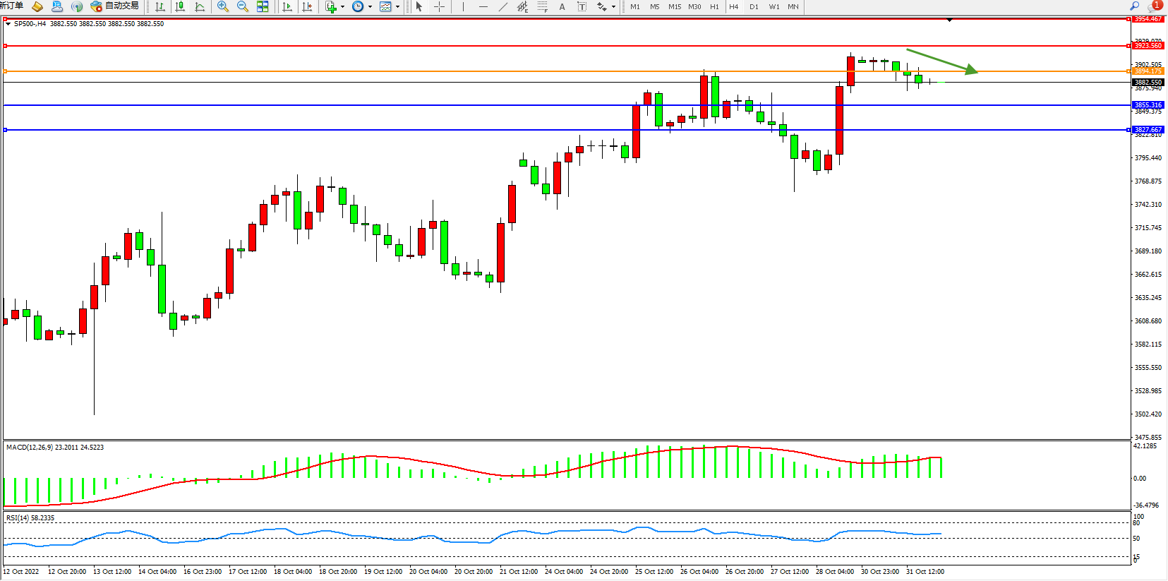 标普SP500——4小时K线图显示: