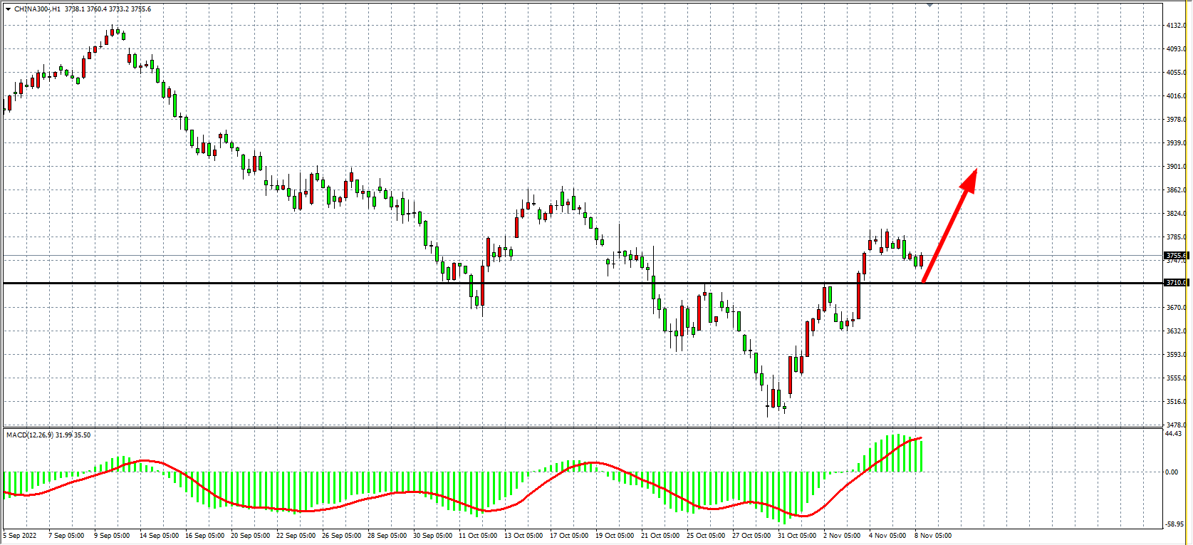 1小时图看,沪深300维持在3710之上,短线回调但未改上行结构,同时MACD量能在零轴之上仍较较大,显示行情有进一步上升空间。日内在3710之上继续看涨为主,上方目标3820-3900