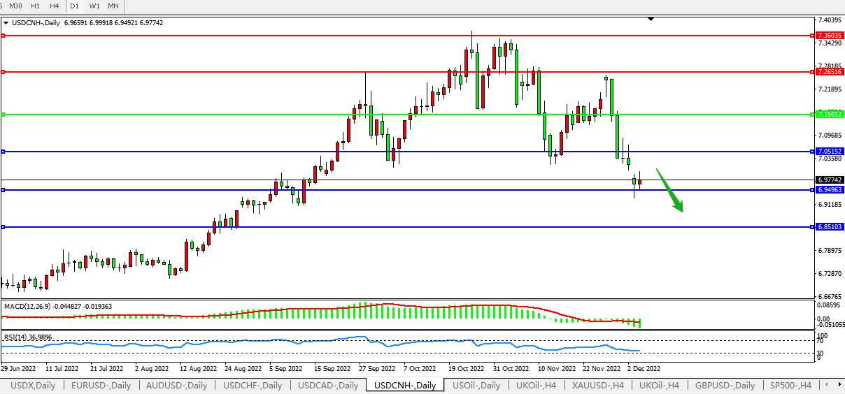 交易策略:在7.1500之下,看跌,目标价位为7.0500、6.9500
