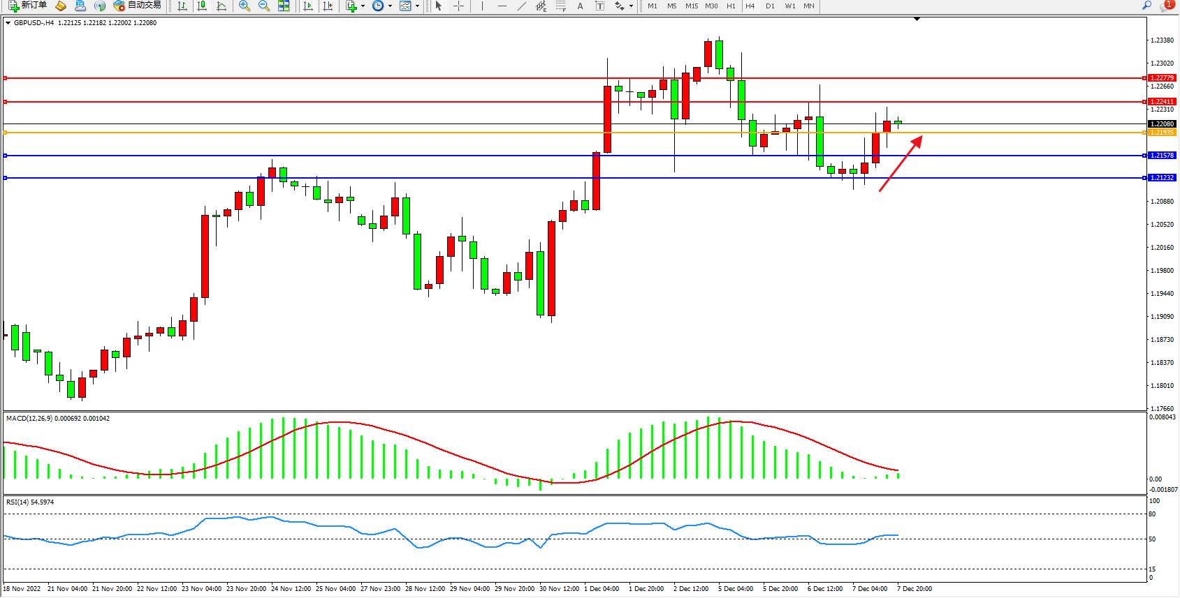 交易策略:1.21935上方看涨,目标1.22411、1.22779