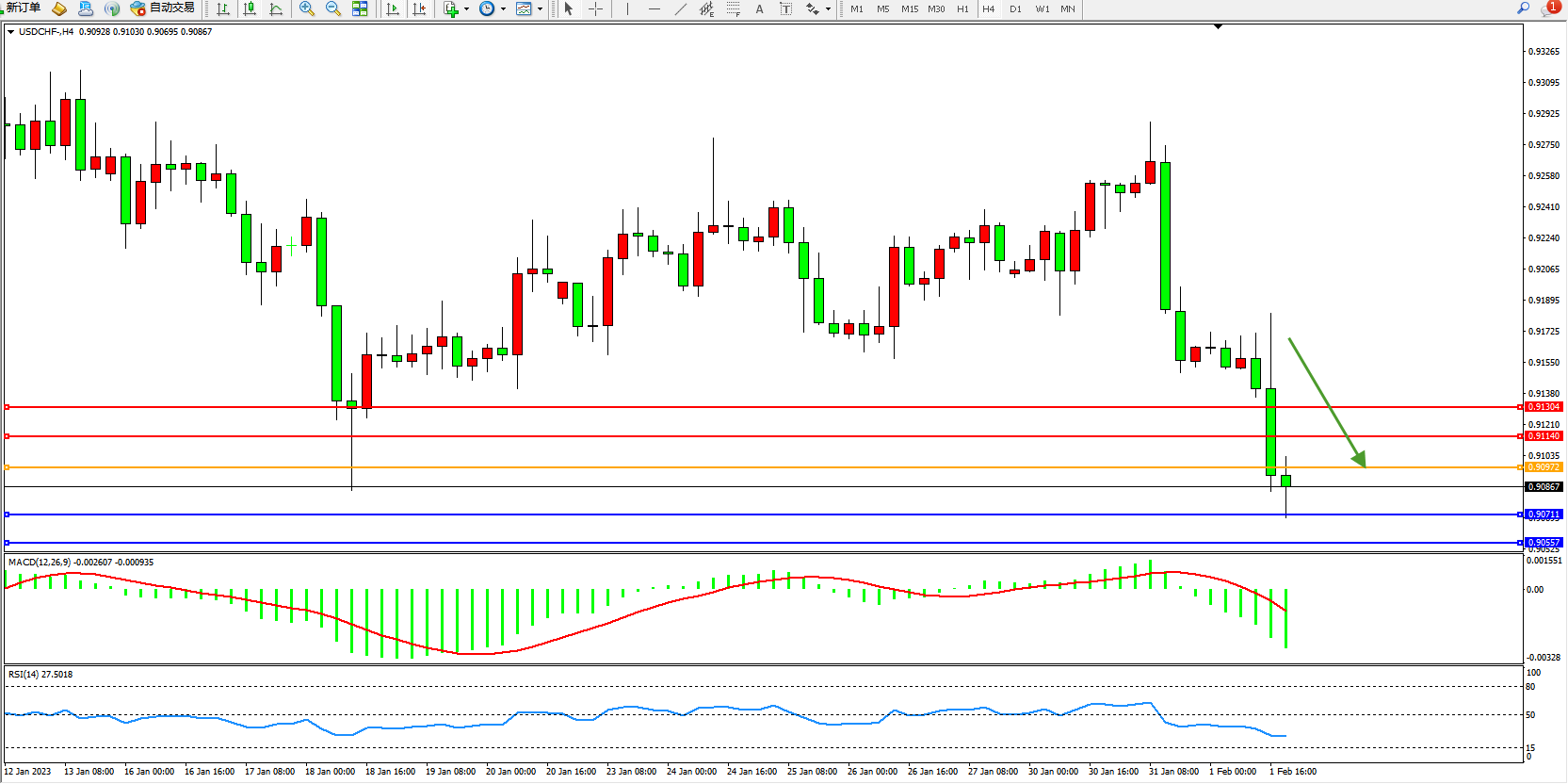 美元兑瑞郎维持0.90867附近震荡,美联储将基准利率上调25个基点至4.50%-4.75%区间,符合市场预期,为连续第二次放缓加息步伐。