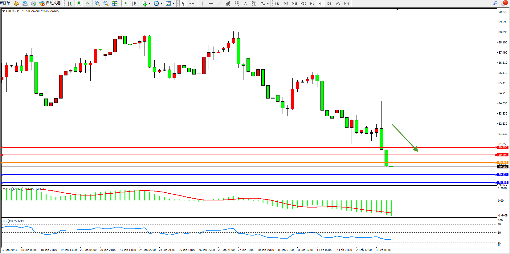 布油UKOil——4小时K线图显示: