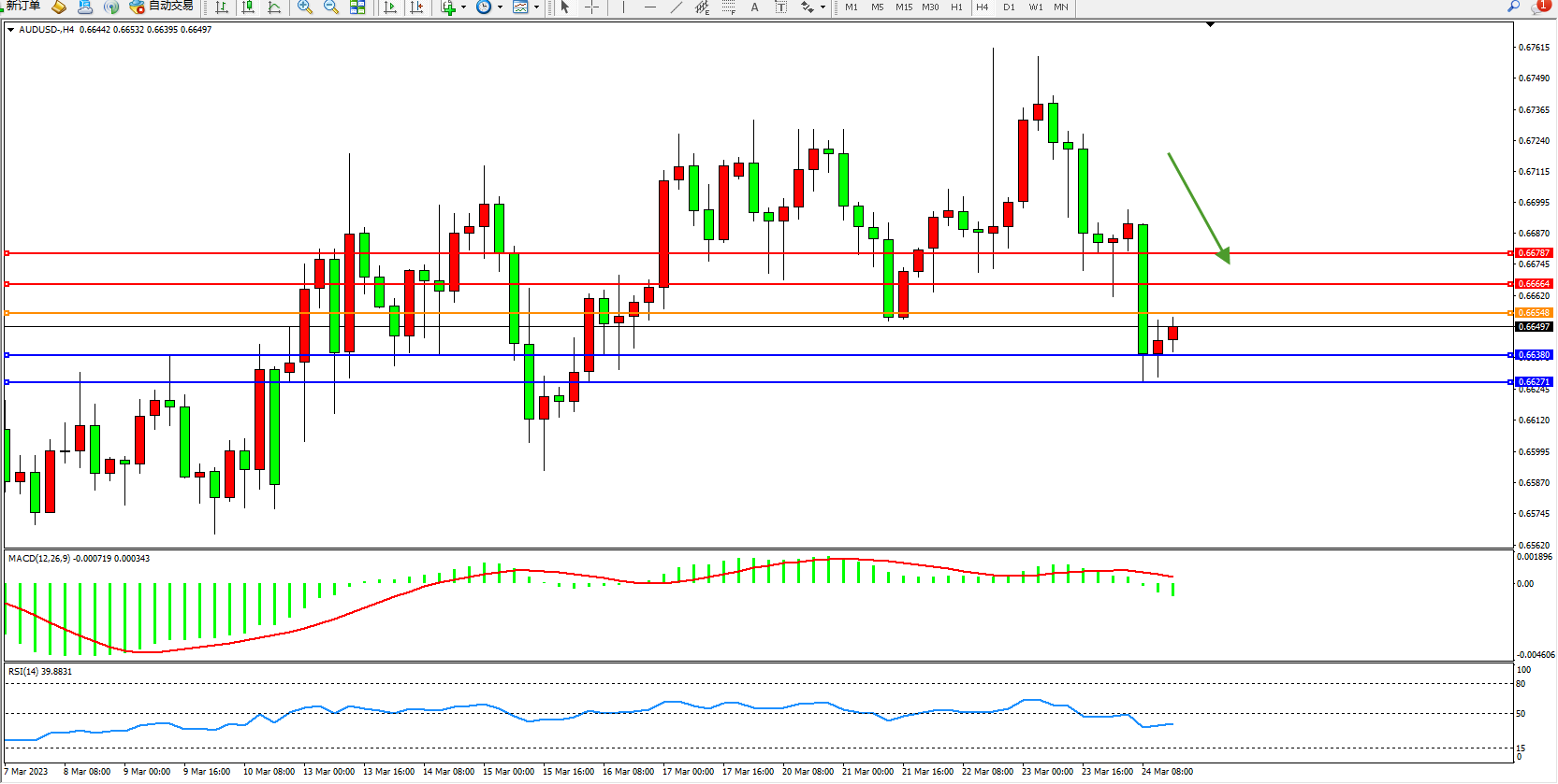 交易策略:0.66548下方看跌,目标0.66380  0.66271
