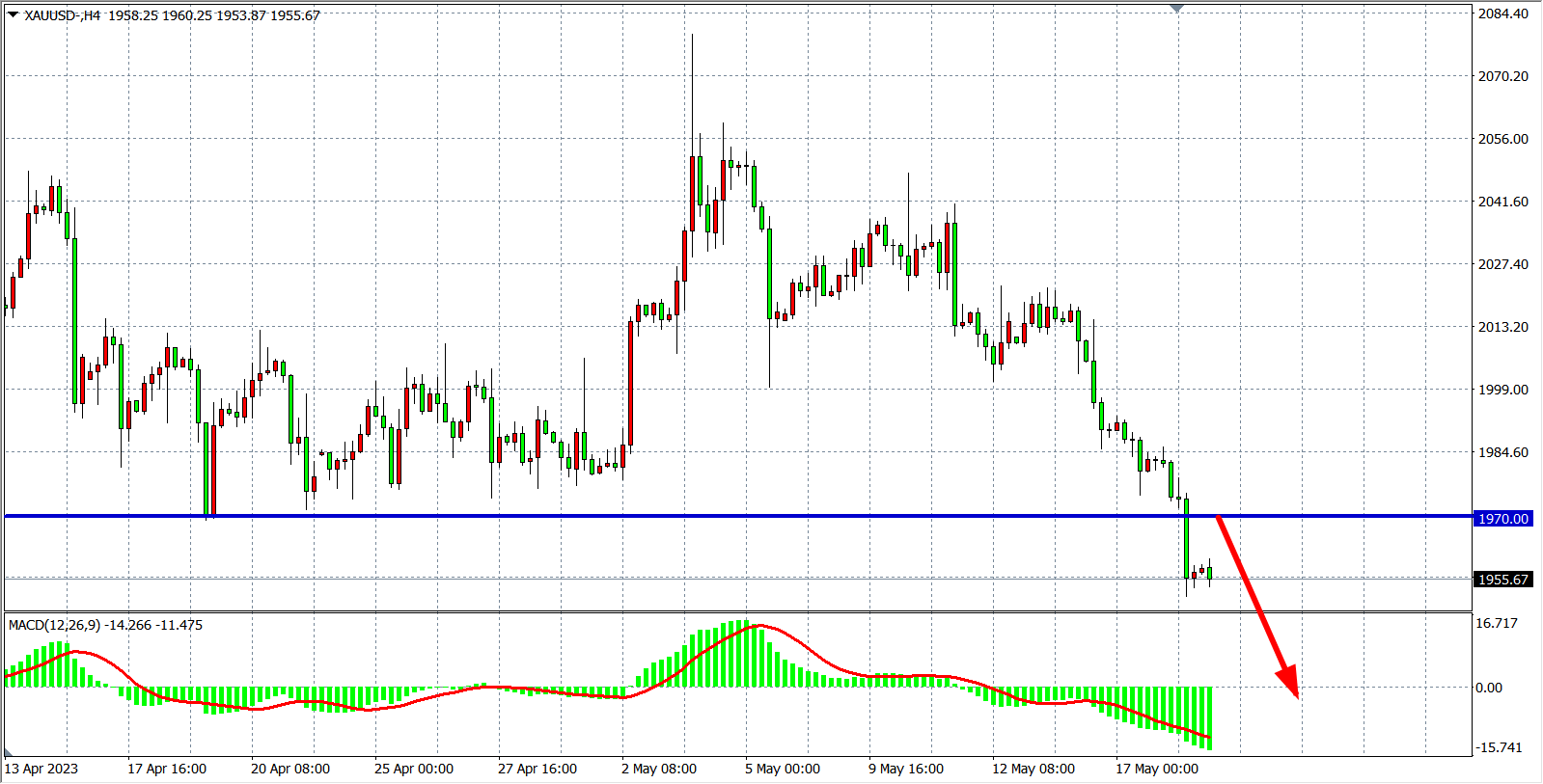现货黄金XAUUSD 四小时图