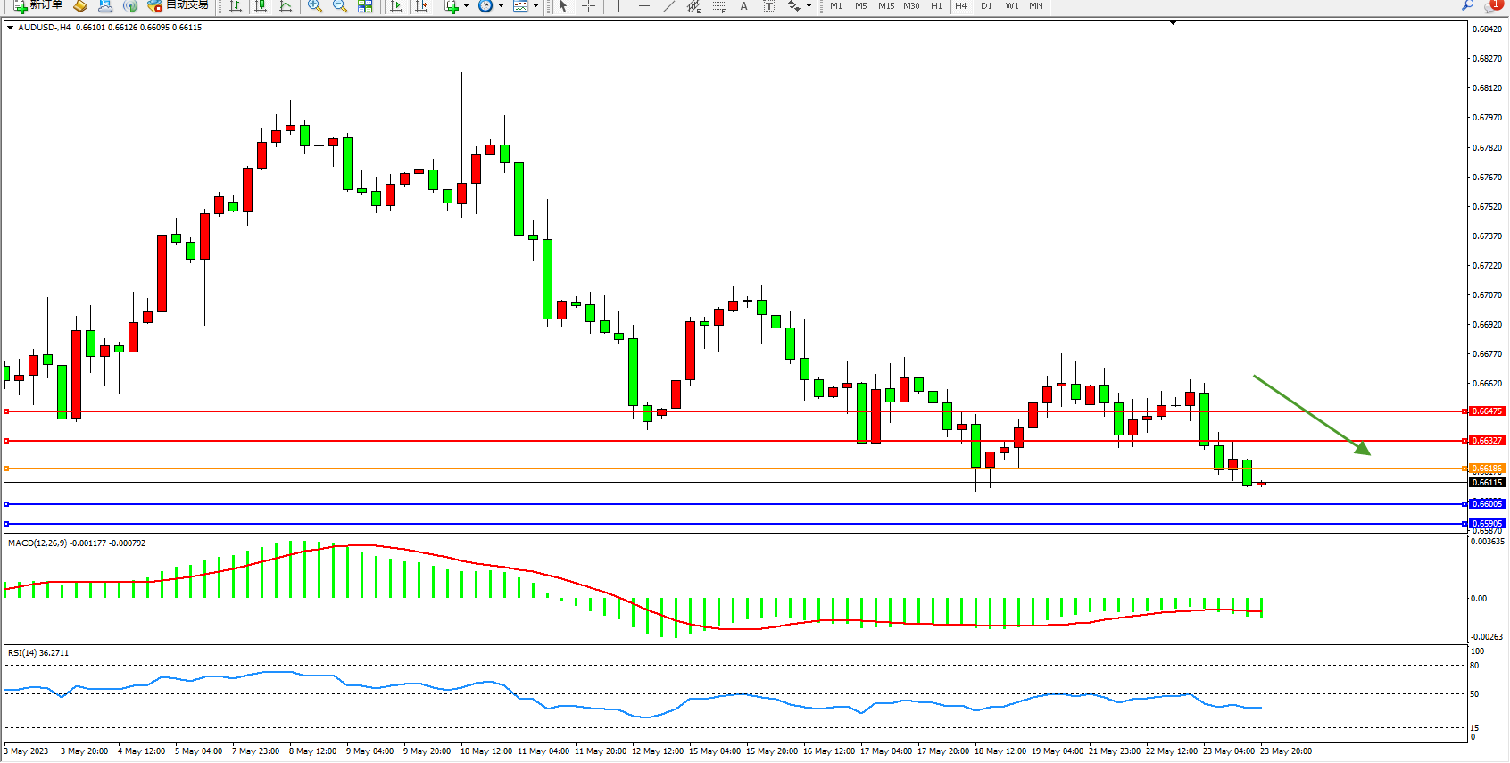 交易策略:0.66186下方看跌,目标0.66005  0.65905
