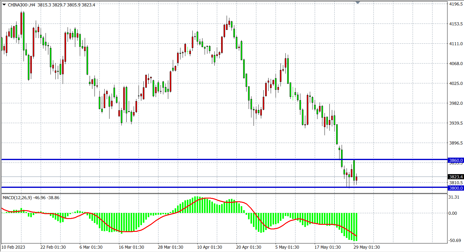 4小时图看,沪深300反弹3860后再度受阻回落,MACD量能在零轴下继续放量,趋势继续维持空头下行,当前阻力继续关注3860附近,支撑关注3800一线,在此区间震荡看整理待。