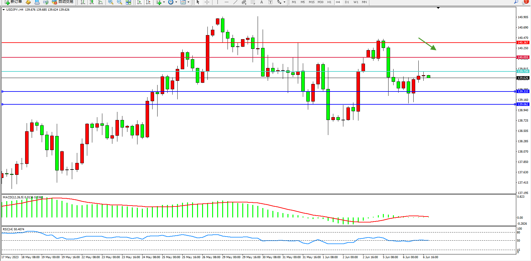 交易策略:139.756下方看跌,目标139.333 139.062