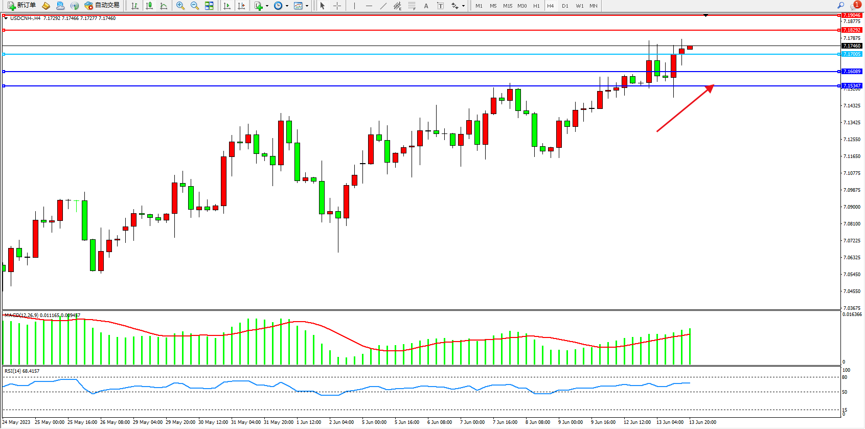 备选策略:7.17005下方看跌,目标7.16089 7.15347