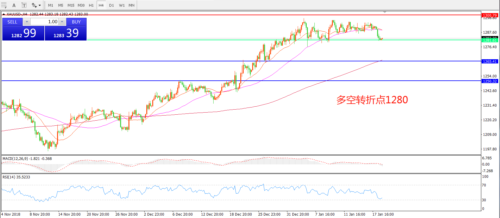 交易策略: 1280.00之下看跌,目标1265.00   1250.00
