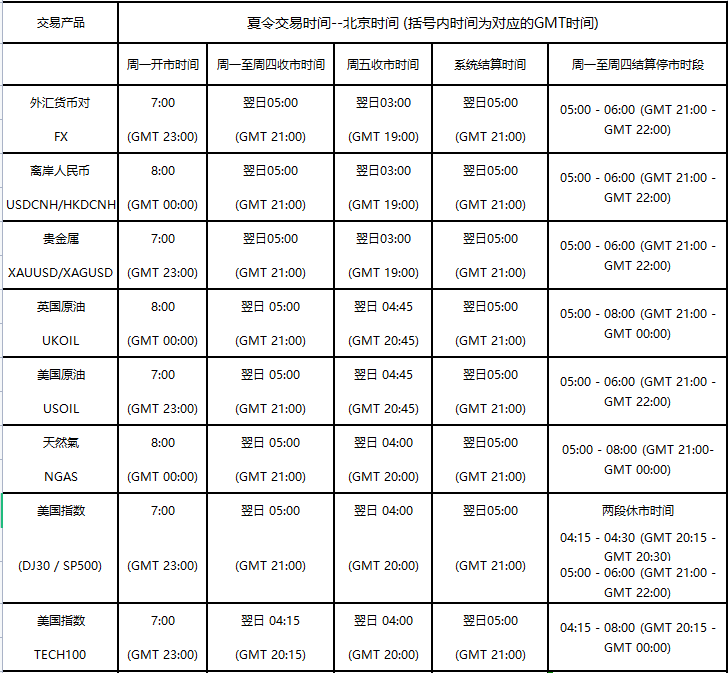 夏令交易时间通知