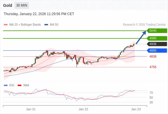 交易策略: 在 4885 之上,看涨,目标价位为 4980 ,然后为 5040 。