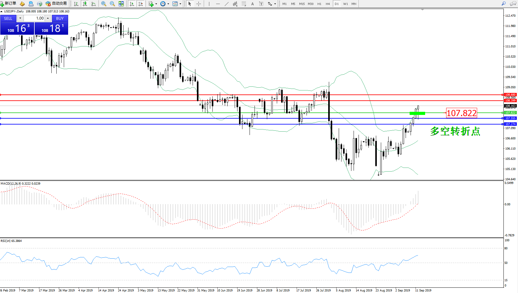 交易策略:107.822上方看涨,目标108.399、108.680