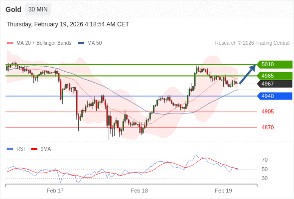 在 4940 之上,看涨,目标价位为 4985 ,然后为 5010 。