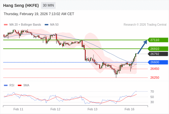 在 26600 之上,看涨,目标价位为 26950 ,然后为 27110 。