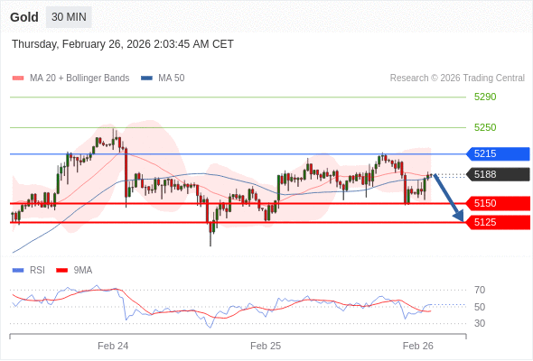 在 5215 之下,看跌,目标价位为 5150 ,然后为 5125 。