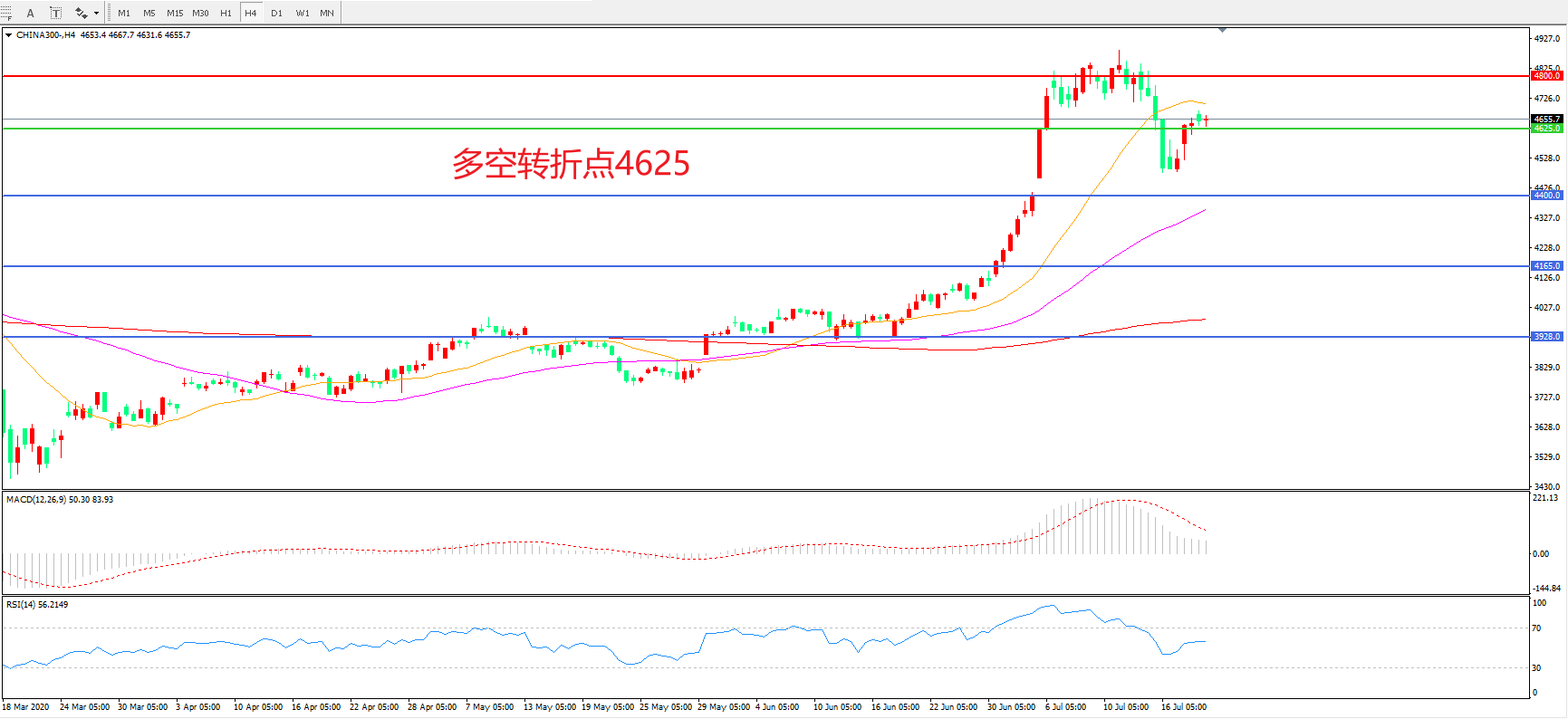 多空转折点:4625.00