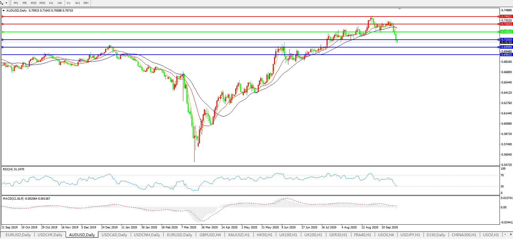 澳元兑美元AUDUSD    日线图: