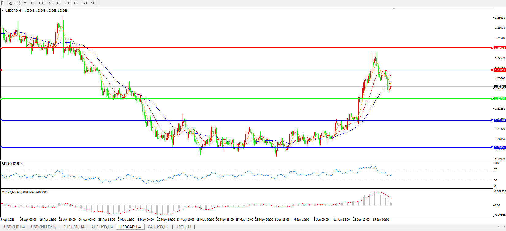 美元兑加元USDCAD 4小时图: