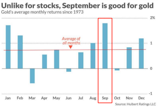 与美股恰恰相反,从历史数据来看,9月往往是黄金表现最好的月份之一。而今年,黄金除了季节性因素影响以外,也受基本面支撑。