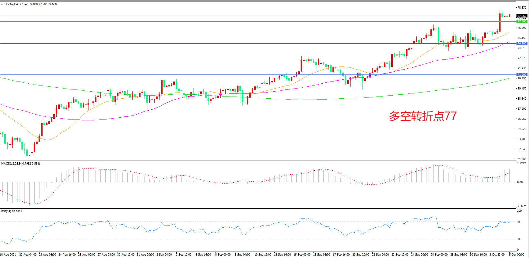 多空转折点:77.00