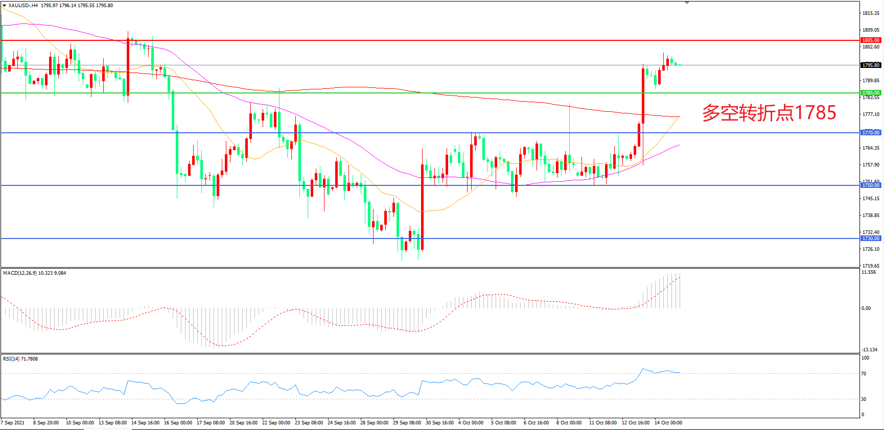 多空转折点:1785.00