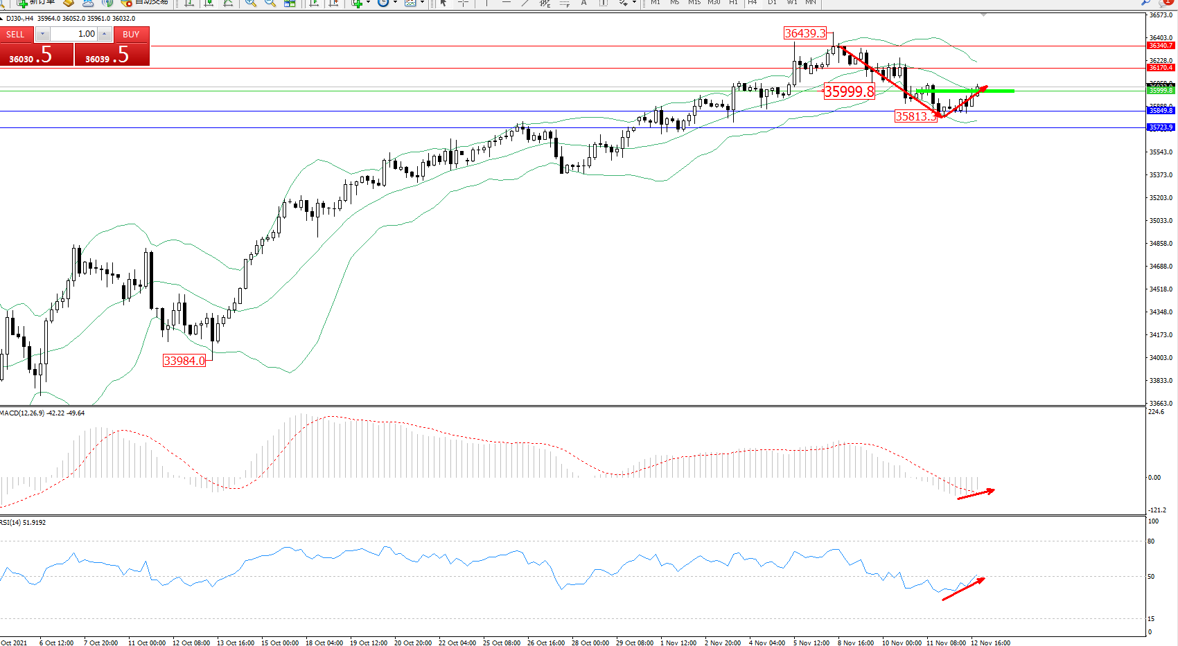 道琼斯指数11月12日(周五)收盘上涨178.81点,涨幅0.50%,报36100.04点;美国股市周五攀升,通胀压力继续影响市场。虽然全球股市自10月初以来首次出现按周下跌,但与债券市场的动荡相比,股市跌幅并不算大。在强劲的企业财报季过后,得益于经济的增长,周期股和成长股都表现不错,周期性股票能抵御住通胀的影响,市场对成长性企业的需求料保持强劲。高通胀对消费者信心造成严重打击,但在周三超预期强劲的美国通胀数据促使投资者将美国加息押注提前后。