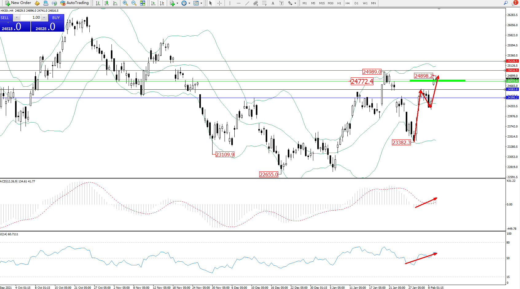 香港恒生指数2月9日(周三)收盘上涨500.5点,涨幅2.06%,报24829.99点;港股三大指数全天走高,行业板块近乎全线上扬,市场情绪较佳。恒生科技指数涨3.65%,三大指数皆收复近2日跌幅。南下资金净流入39.53亿港元,大市成交额小幅放大至1407亿港元。据央视,近期,香港疫情不断扩散,香港特区行政长官林郑月娥2月8日出席行政会议前形容,目前香港每天确诊数字令人“惊心动魄”。她重申,特区政府至今仍认为必须坚持“动态清零”的抗疫工作理念,并争取时间提升疫苗接种率,避免对医疗系统带来无法负荷的压力和严重的冲击,这也是最符合香港目前的实际情况。她已向中央寻求支援,包括内地检测人员正陆续来港。