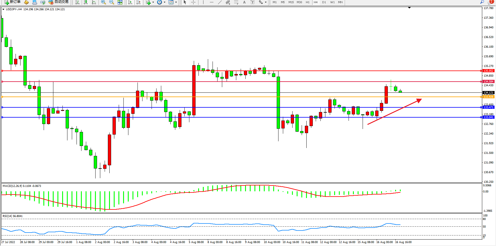 美元兑日圆维持134.121附近震荡, 投资者对美元的需求可能会延续,因美联储加息提振美元和日元利差及对冲成本。美元需求是今年美元兑日圆USD/JPY走强的另一个因素。