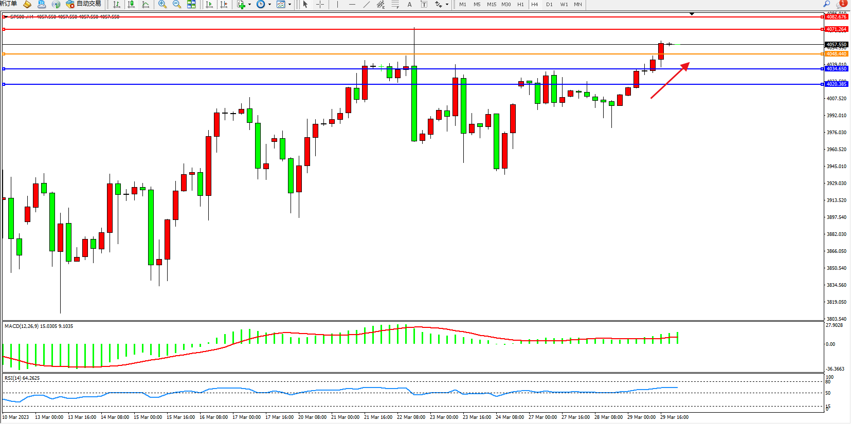 标普SP500——4小时K线图显示: