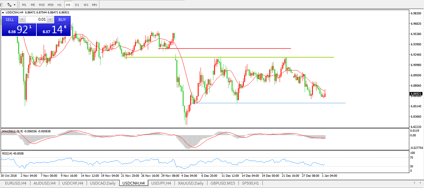 美元兑人民币USDCNH4小时图: